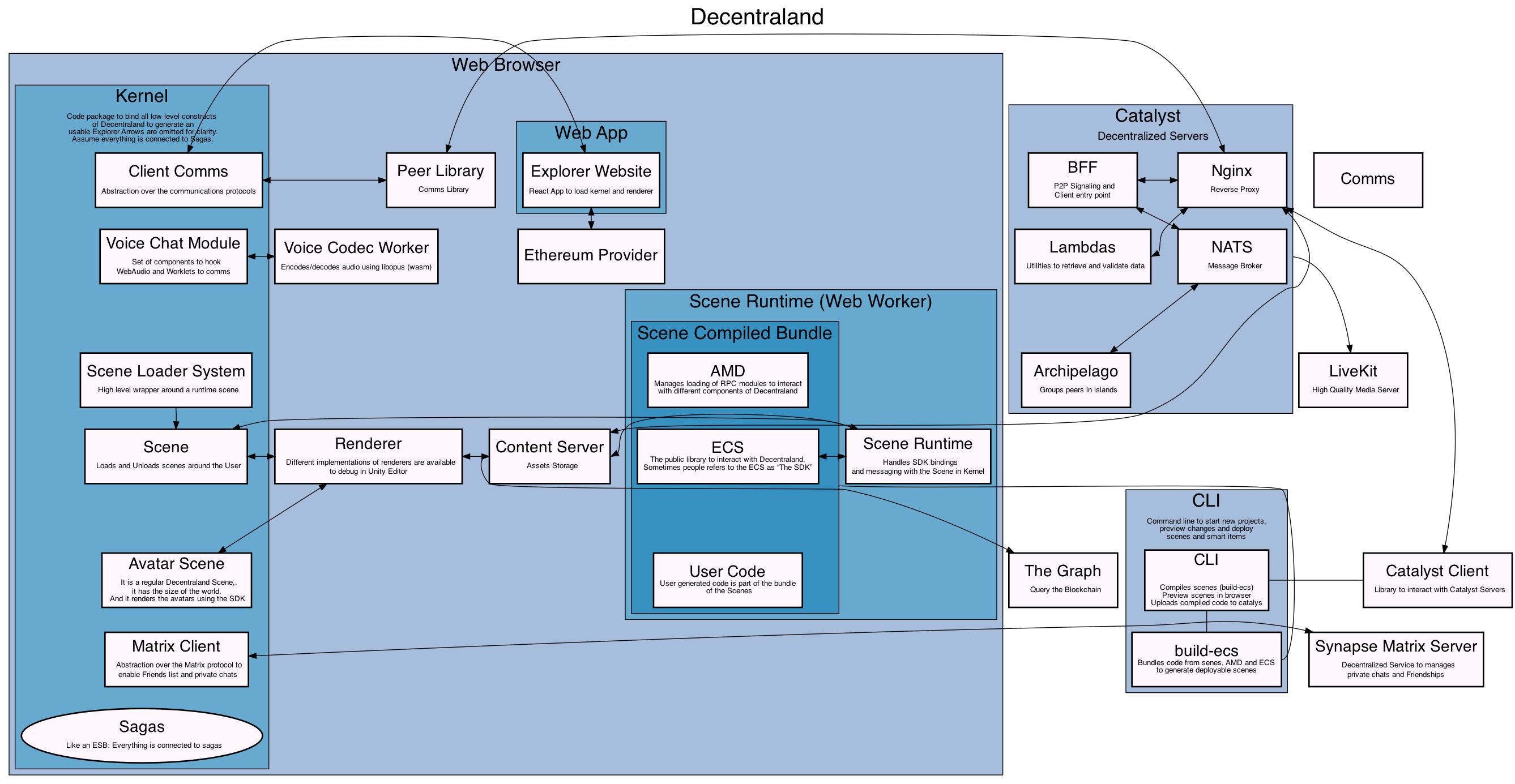 The general architecture of Decentraland can be divided into three main components: