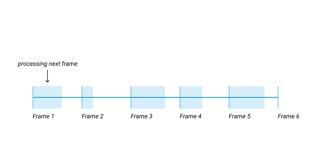 If the processing of a frame takes longer than 30/1000 seconds, the drawing of that frame is delayed. The engine then tries to finish that frame and show it as soon as possible. It then proceeds to the next frame and tries to show it 30/1000 seconds after the last frame. It doesn’t compensate for the previous delay.