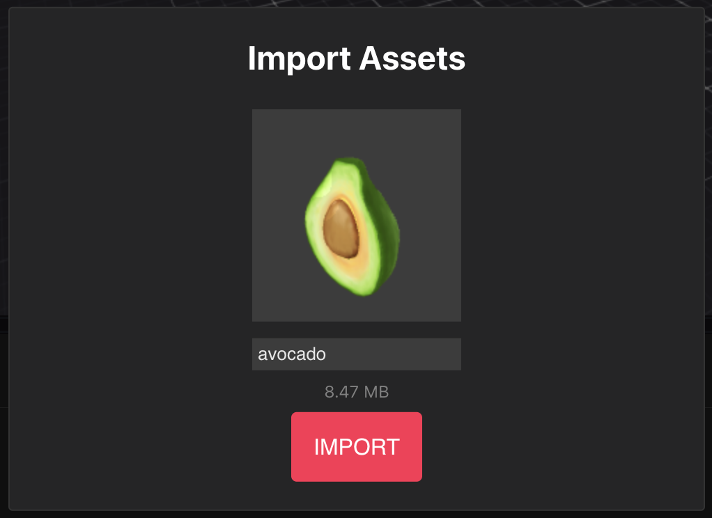 1. Check the model thumbnail and click Import. When importing multiple assets, use the arrow buttons to cycle over each asset.
