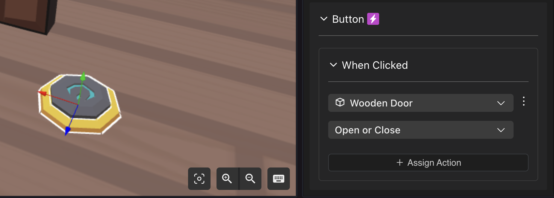 π‘ Tip: You can instead create a new Trigger event that only handles the door’s action. Both trigger events are called every time the button is clicked.![]()
