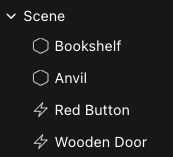 - Doors: Doors are opened or closed when clicked. You can change this behavior so they’re opened by buttons, trigger areas, etc.
