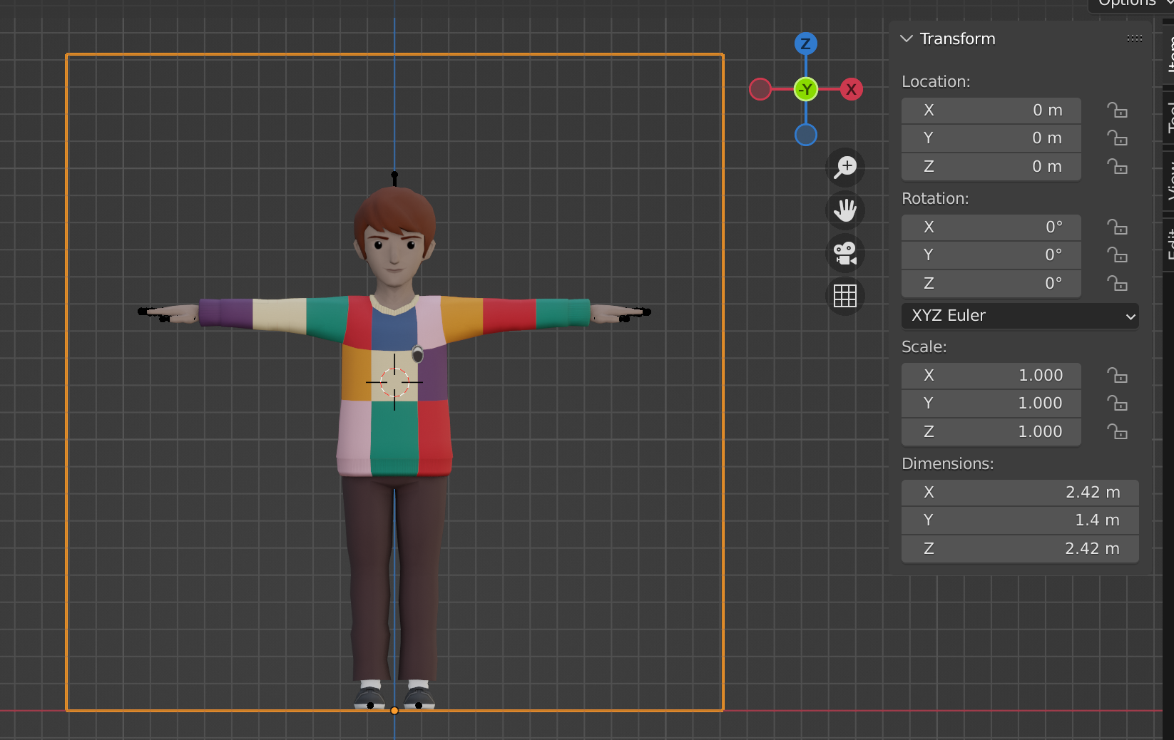 1. But it is also good to keep in mind that you can easily alternate from A-Pose to T-Pose just toggling back the “Edit mode” and “On cage” in the armature modifier.