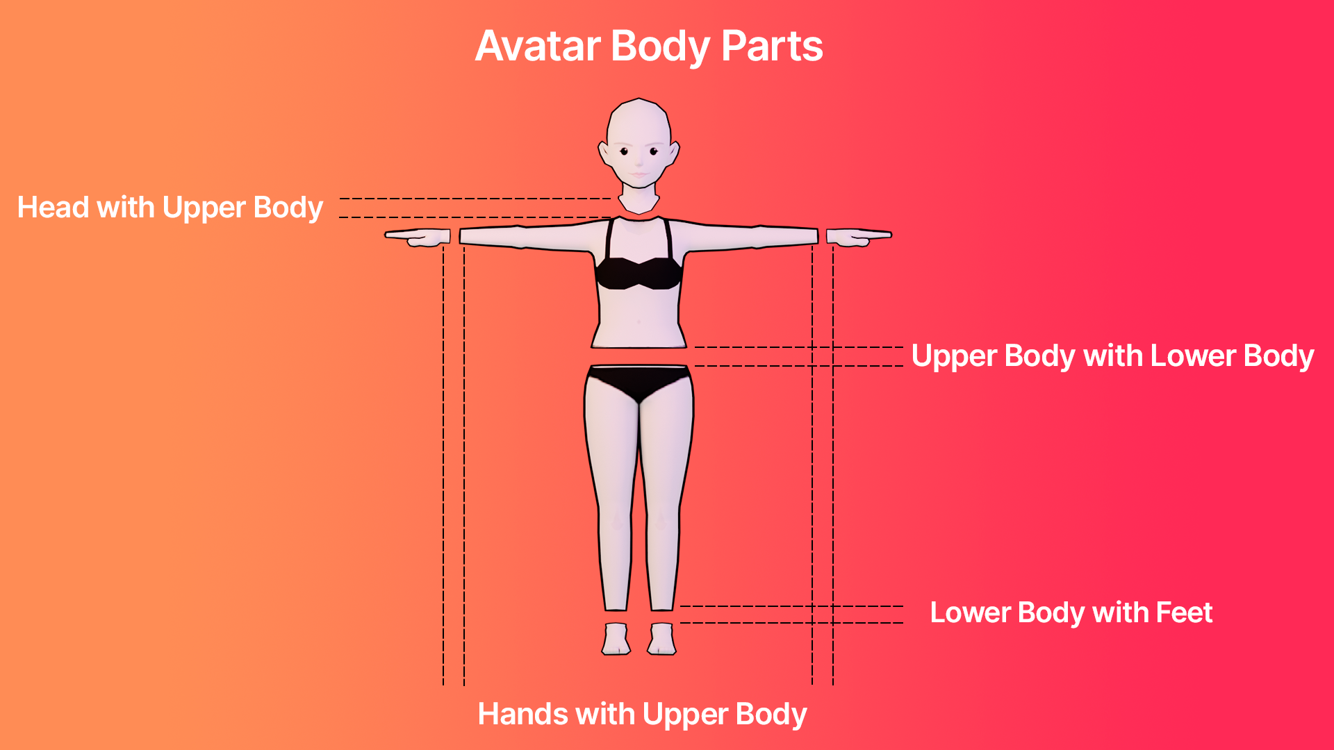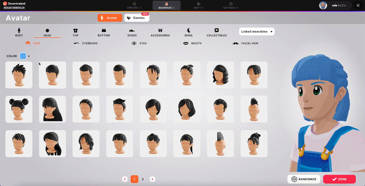 The Decentraland “avatar system” is the broad collection of different body components and subcomponents that can be decorated with custom wearables. These components are: