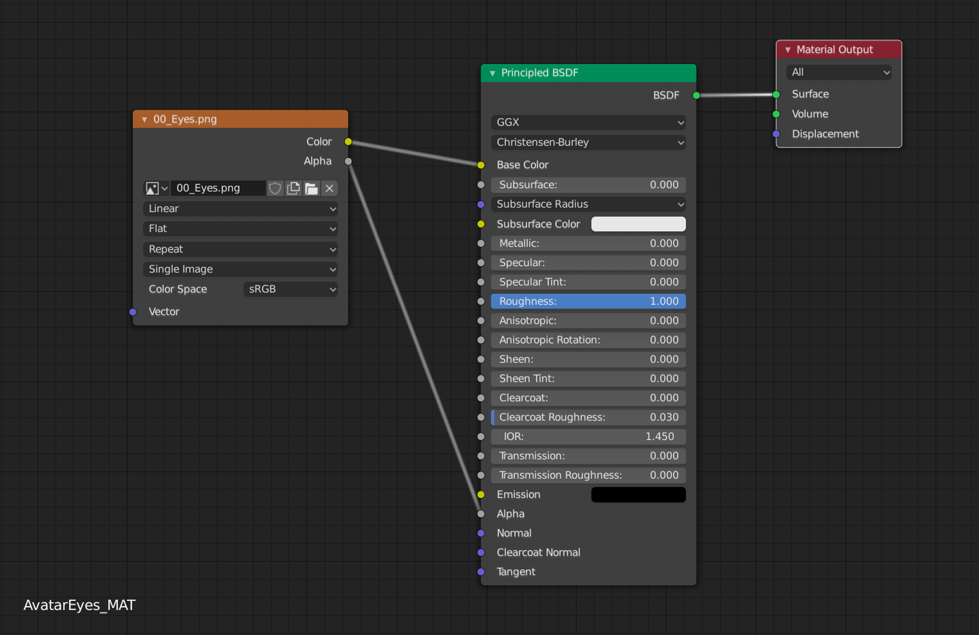 There are three basic materials for avatar models. One is the material used for the wearable itself, another one is used for the skin and another one for the eyebrows, eyes and mouth.