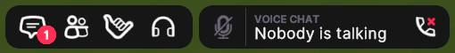 When you enter the world, the voice chat will be automatically connected. You can confirm that voice chat is connected, when you see this UI in the taskbar.
