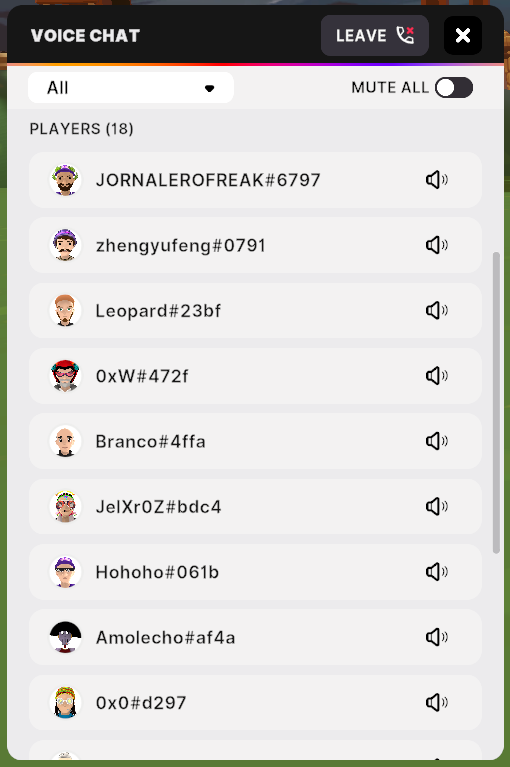 2. Utilize the MUTE ALL toggle at the top right corner to mute/unmute all nearby users collectively.