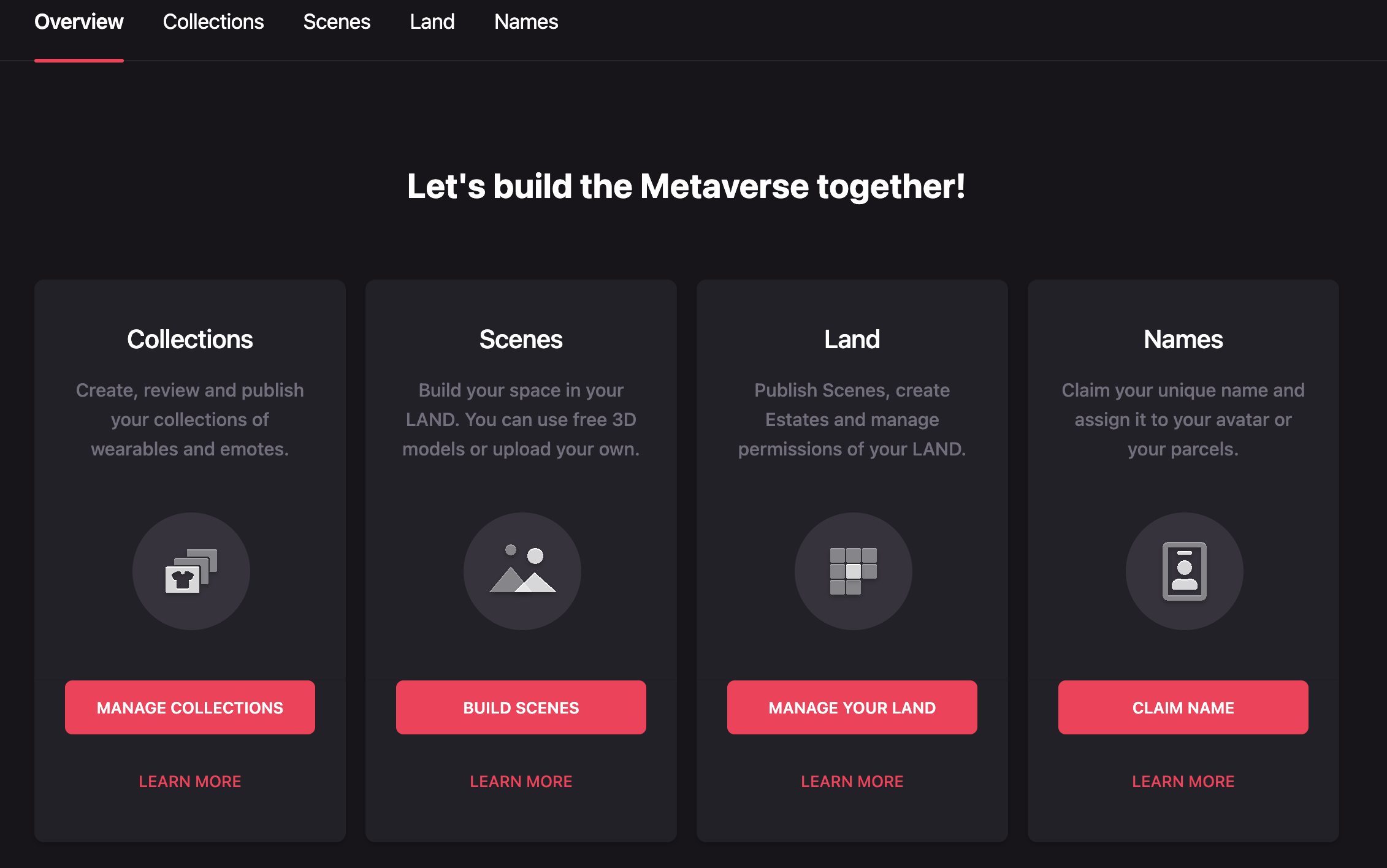 To create your first Estate, you need to own two or more adjacent LAND parcels.