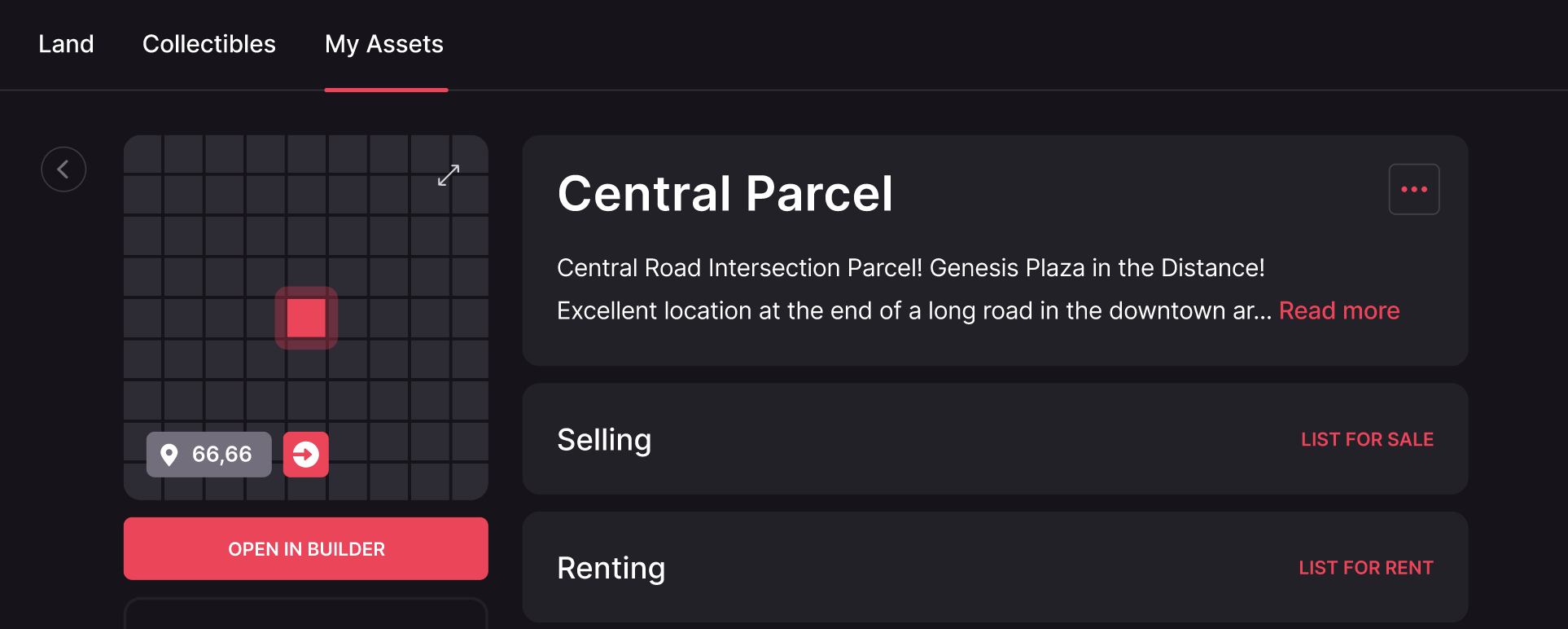After the price, rent period and listing expiration date are set, your LAND will appear as available for rent in the Marketplace.